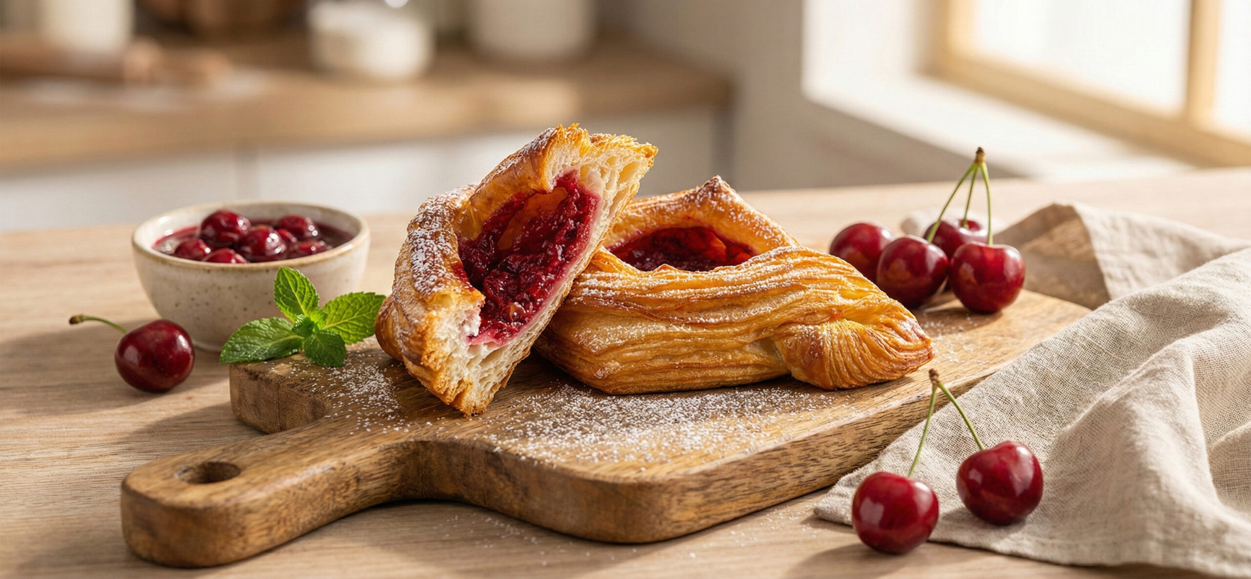 əla növ buğda unu, şəkər tozu, kərə yağı, yumurta, içməli su, süd, duz, maya, dondurulmuş albalı, vanil tozu, qarğıdalı nişastasıHəcmi: