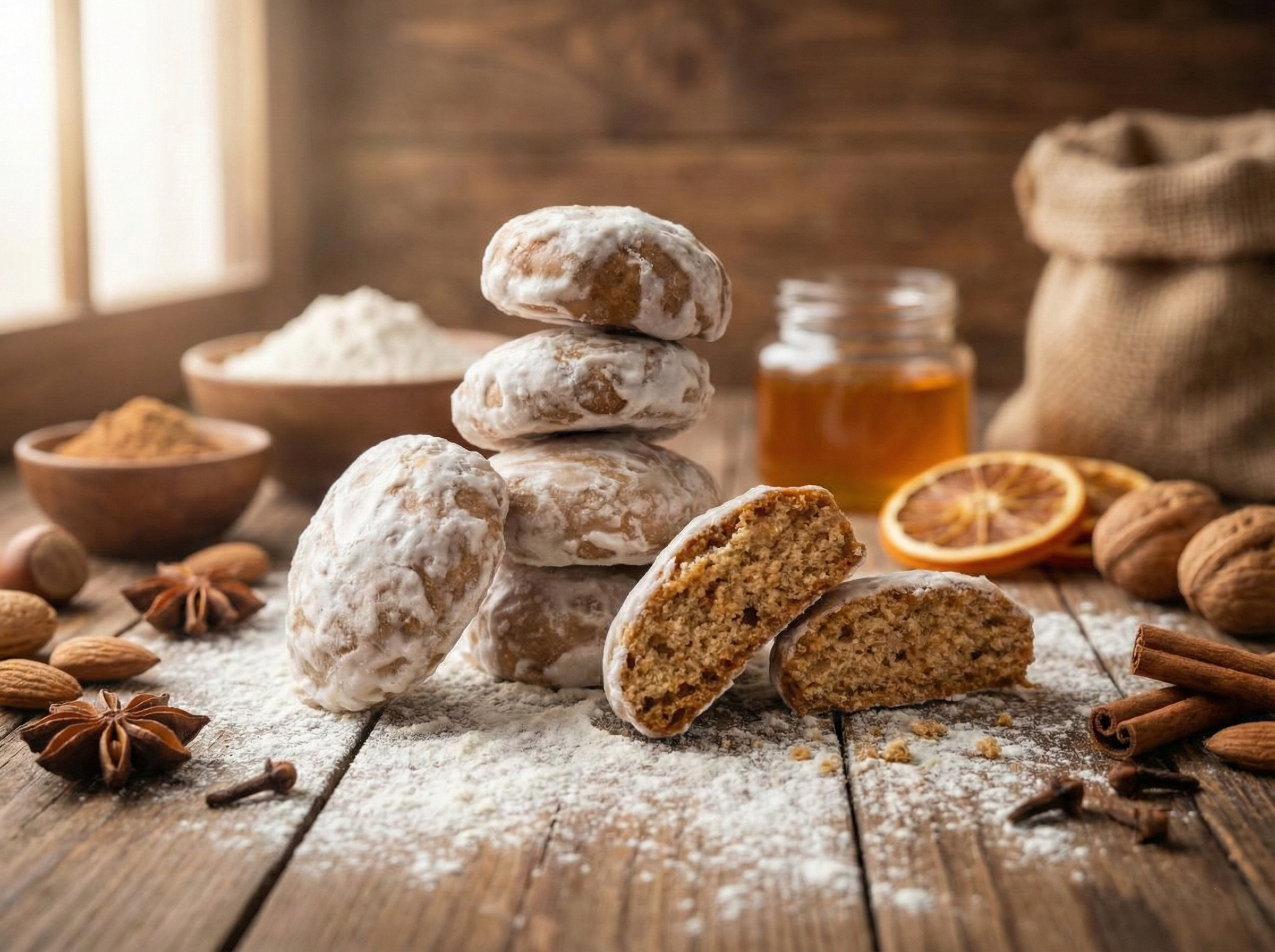 Əla növ un, şəkər tozu, bal, yumurta, kərə yağı, qabartma tozu, soda, üyüdülmüş qoz, içməli su.Həcmi: